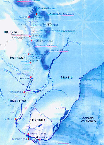 A hidrovia dos rios Paraguai e Paraná pretende criar um corredor navegável entre Cáceres, em Mato Grosso do Sul, e Nueva Palmira, no Uruguai, ligando inclusive à Bolivia, através do canal do Tamengo.
